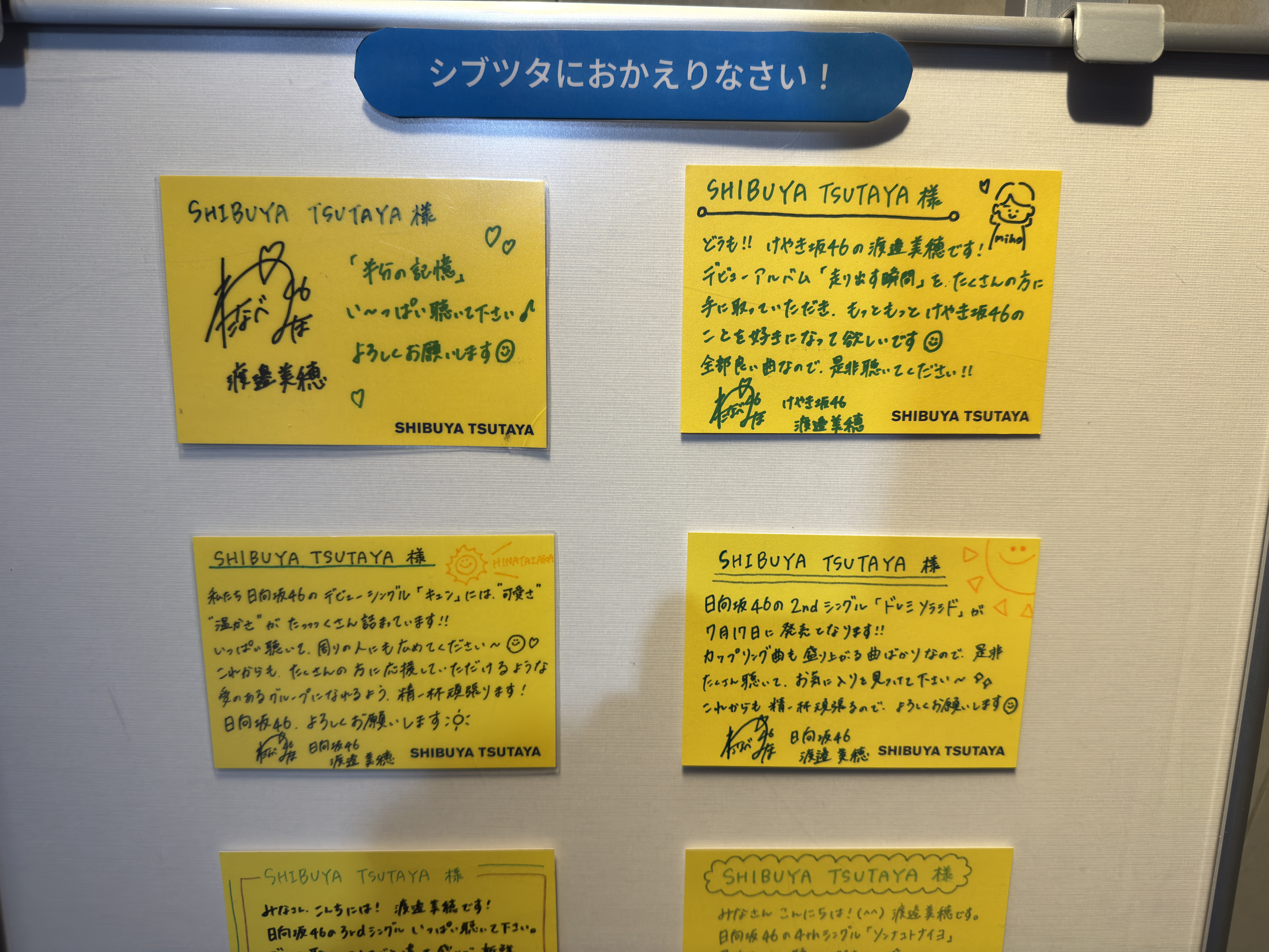 SHIBUYA TSUTAYA を出た後、Xで「シブツタにおかえりなさい!」ボードの存在を知り再突入。地下2階で徘徊すること数分、奥の方にひっそりと佇むボードを発見。シャッター音を何度も響かせ、またSHIBUYA TSUTAYAを出た。